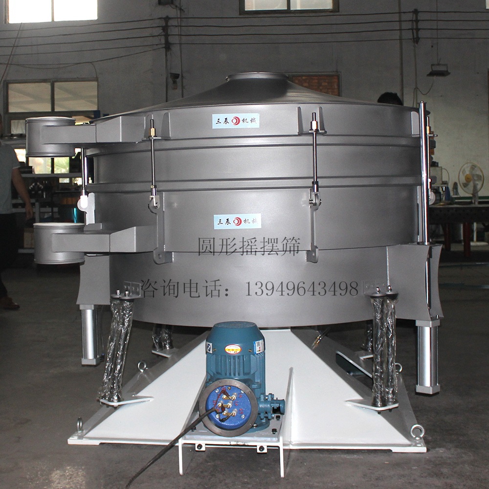 2、激振力过小。圆形摇摆筛运转的动力是电机的运转,不同规格的圆形摇摆筛使用的振动电机的大小和功率也不同,圆形摇摆筛是使用振动电机带动皮带,再由皮带带动轴承,实现电能转化为机械能。而振动电机和皮带在长期的使用过程中,会出现不同程度的磨损,从而影响激振力的大小,造成摇摆筛下料慢。针对这一问题,三辰小编建议定期检查振动电机及相关零部件的磨损,及时更换、维修,从而延长电机的使用寿命,保证筛分的效率。