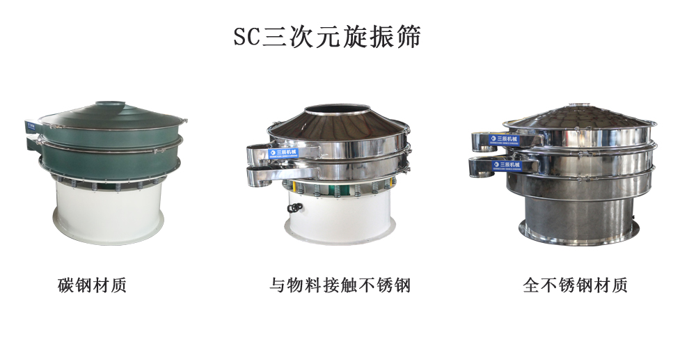 三次元振动筛一般选用Q235碳钢和304/316不锈钢,而具体选择什么材质要根据行业和物料的特性,比如食品、医药行业一般选用304不锈钢,而针对于有腐蚀性的物料筛分一般选用316不锈钢,非金属矿产品的筛分一般就会选用碳钢材质的振动筛,但是具体选用什么样的材质还需要根据物料特性来决定。