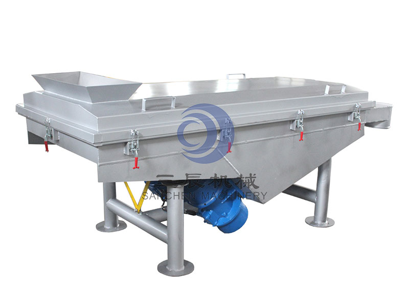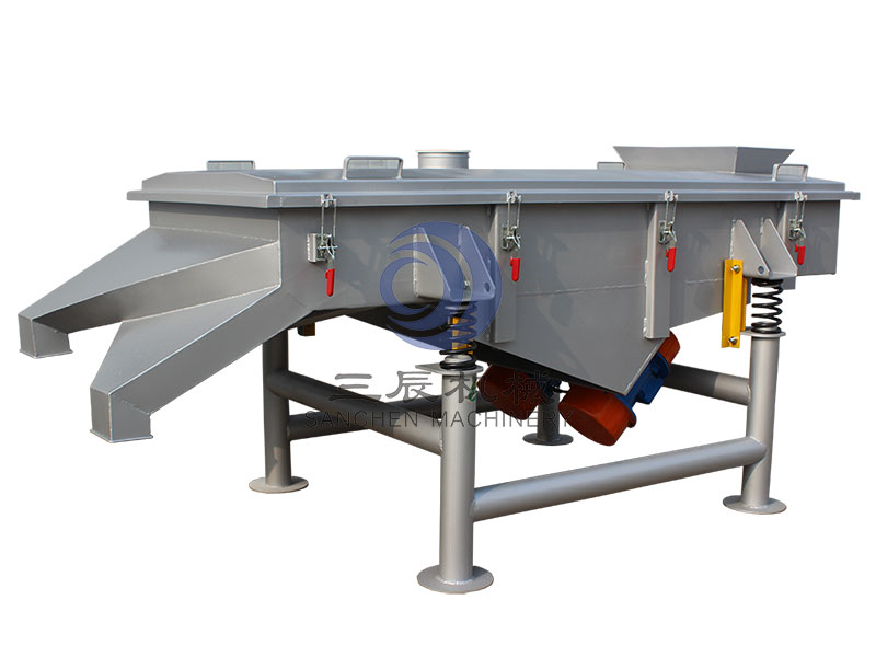 1.SC系列直线振动筛利用双振动电机激振作为振动源,使物料在筛网上被抛起,同时向前做直线运动,通过多层筛网产生数种规格的筛上物、筛下物,分别从各自的出口排出。